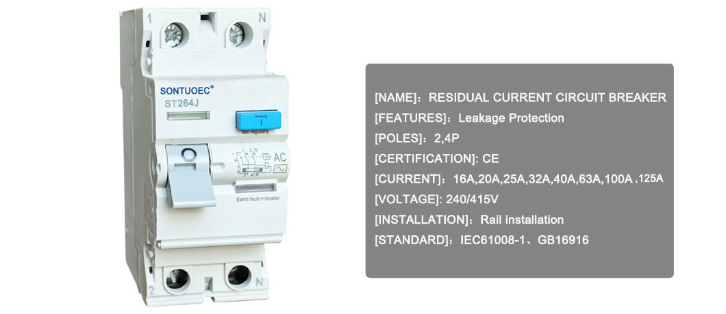 SONTUOEC е еден од кинеските добавувачи/производители специјализирани за производство на разни мали електрични апарати ST264J се користи во AC50 / 60HZ два пола 230V, четири пола 400V, номинална струја до 63A, може автоматски и веднаш да го прекине напојувањето кога некој ќе доживее струен удар или истекување. Може ефикасно да ја заштити личната безбедност и да избегне оштетување на опремата. Прекинувачот со преостаната струја може да функционира и како заштита од преоптоварување и краток спој и нечесто менување на линијата во нормална состојба. Производот е погоден за индустрија, бизнис, зграда, престој итн. Тоа е во согласност со стандардите IEC61008-1.