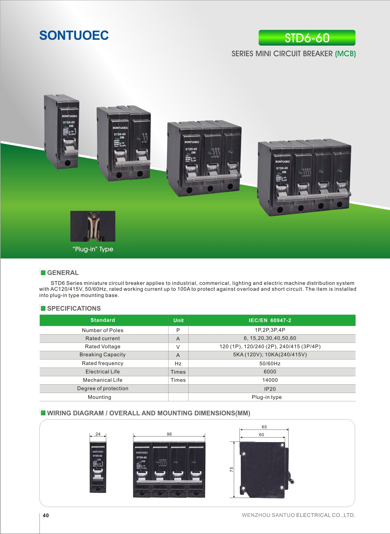 SONTUOEC е еден од кинеските добавувачи/производители специјализирани за производство на Hot Sale Bh Safety Mini Circuit Breaker MCB Price 100A и е за заштита од преоптоварување и краток спој што се користи во станбени и индустриски дистрибутивни системи. Максимална номинална струја до 63А