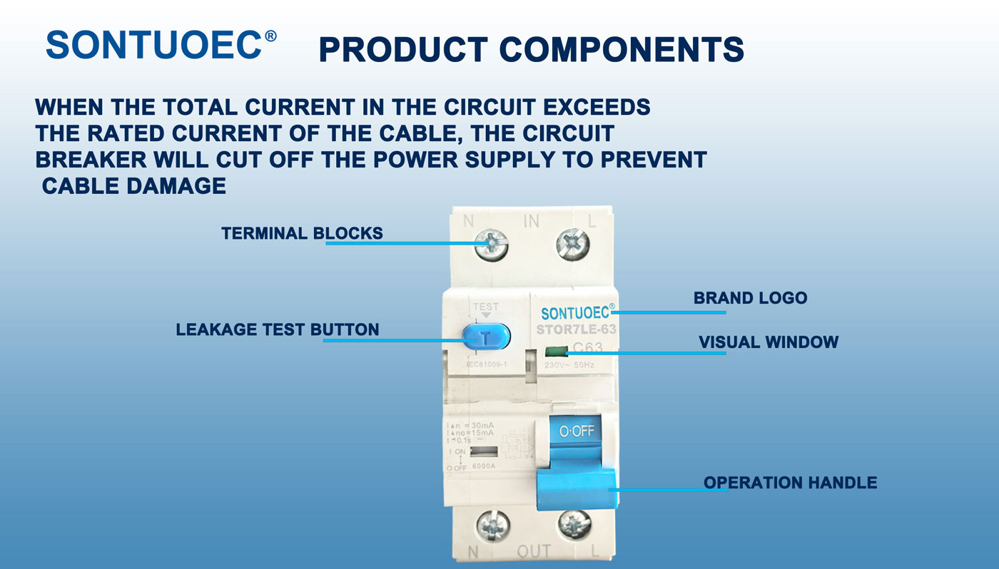 SONTUOEC е еден од кинеските добавувачи/производители специјализирани за производство на различни мали електрични апарати STRO7LE-63 RCBO се користи во еднофазното коло на наизменична струја од 50/60Hz, номинален напон 240V и негова самозаштита до максимална струја на краток спој 40A. Може да го заштити цивилното електронско коло од преоптоварување и краток спој. Овој производ има предности од мал волумен, висок капацитет на кинење, а жицата под напон се отсечени во исто време, а исто така го заштитува лицето од електричен удар кога жица под напон е поврзана спротивно. И тој е во согласност со стандардот на IEC 61009-1.